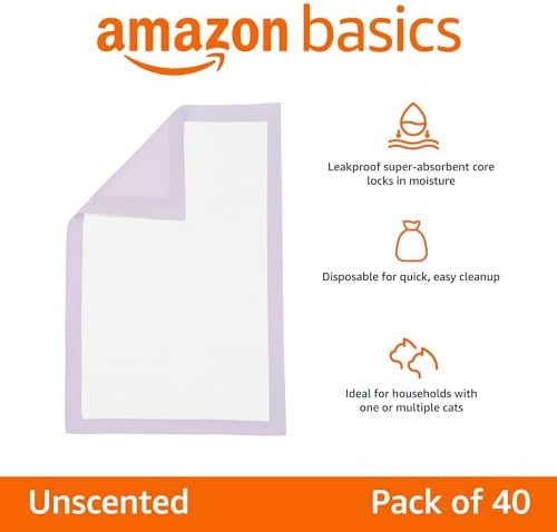 Amazon Basics Cat Pad Refills for Litter Box, Unscented, Pack of 40, Purple and White