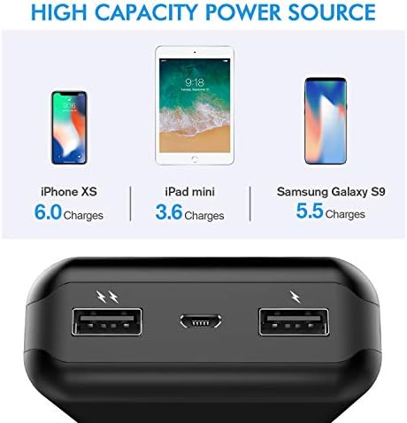 ✅【A must have on the go】:26800mAh High Capacity power bank portable charger is perfect for for GPS when using motorcycle,Vacations,Business trip,Camping,Hiking, no need to worry about losing contact with anyone when runing out of phone battery. (Please be aware that this item is NOT wireless unit) ✅【Power Bank with Dual input and Dual output】:There are 2 USB Ports output which can be shared with friends or charge 2 devices at the same time. It is with 2 input options,USB Micro input and USB C input options allow you to recharge it with different cords (The recharging cord comes with the item is USB Micro Cord) Please recharge this item with a 5V 2.1A wall charger,do NOT use an iPhone square charger which is 5V 1.0A output,please. ✅【Portable phone charger with LED display】:The front LED Display will be more convenient to know the remaining juice than a blinking dot. So that you will know exactly when to recharge the item. To turn on the LED Screen, just need to connect your devices to the item or click the power button on the side of the item. The LED screen is Hidden-Design,you will NOT be able to see the display unless the LED screen is ON. ✅【NOTE】:The battery pack will work with 5V 2A USB heated vest,heated jacket, Waterproof Heated Safety Bomber Jacket,it will NOT work with 7.4V heated clothing with DC jack. ✅【What you can get】: 26800mAh Portable Charger Battery Pack*1,Micro USB cable for recharging the unit*1,User Manual*1