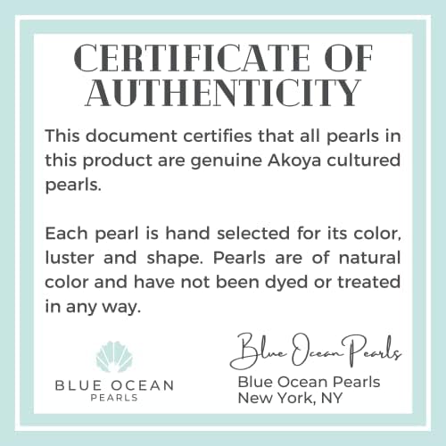 WEDDING READY – Choose this timeless statement of beauty for your big day. A slender line of lustrous white genuine Japanese Akoya cultured pearls encircles your neck, in your choice of pearl diameters. A classic fishhook clasp crafted of solid 14 karat gold ensures a secure fit. The single-knotted strand is hand-strung on pure silk cord, making this traditional piece beautifully durable. You'll be proud to pass it down as an heirloom to your daughter or granddaughter. AN ELEGANT EXPRESSION – This gorgeous cultured Akoya pearl jewelry adds a luminous glow to your look. Symbolizing purity and transformation, pearls have been coveted for millennia for their rare beauty and connection to exotic seas. Pearl is the modern and Ayurvedic birthstone for June, the mystical birth month gem of November and symbolizes the Gemini zodiac sign. Make this lovely design from our Amazon collection your signature piece, and you’ll win compliments every time you wear it. THE UTMOST IN QUALITY – At Blue Ocean Pearls, we choose only the most excellent quality cultured pearls that are sustainably harvested by hand. Our hand-picked pearls are truly exceptional AAA+ quality and feature superior luster and uniformity, without the blemishes or uneven color common to cheaper pearls you may find online. Each piece is designed and made right in the heart of New York City, USA by artisans with decades of experience. Wear our lovingly handcrafted jewelry with pride. PERFECTLY GIFTABLE - Pearls are the traditional 30th wedding anniversary gift, making this piece a sentimental present for wives, mothers, and grandmothers. Want to surprise your girlfriend on Valentine’s Day? Need a birthday gift idea for your mom, daughter, sister, granddaughter, or best friend? Packaged in a signature presentation box, this special piece is ready for giving. Or treat yourself and be dressed to impress for a girl’s night out, date, party, holiday celebration or any event! HAPPINESS GUARANTEED – At Blue Ocean Pearls, we pride ourselves on our exceptional quality and world-class customer service. Each of our products is meticulously inspected and packaged with care to make sure you are getting the very best! If you aren’t completely delighted for any reason, we offer a No-Questions-Asked Money-Back Guarantee for 30 days after purchase. AND, we stand behind all our products with a Lifetime Warranty against manufacturer defects. Buy with confidence today! #1,523,856 in Clothing, Shoes & Jewelry ( ) #472 in