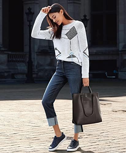 Montana West vintage large tote bag is crafted out of premium vegan leather, accommodates daily essentials with a spacious and organized space, and a magnetic to secure it shut. The top handle handbag features a double carry design, wear it flexibly on the shoulder with long handles or as a handbag with short handles. 4.3"D x 13.4"W x 14.6"H (10.4" & 4.3" drop). Includes 1* front open pocket and 1* inside open pocket. An extra detachable zipper pouch. Essential for work, and casual use.