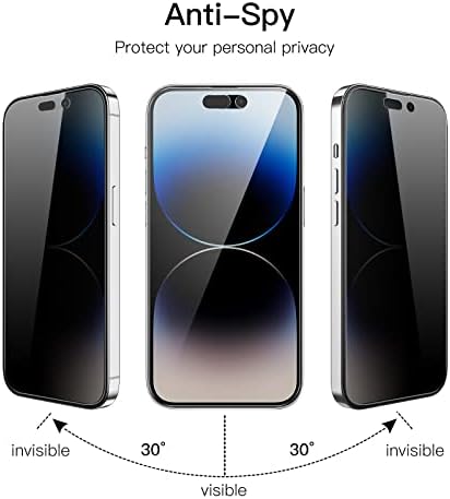 [Privacy Protection] Exclusively fit iPhone 14 Pro Max 6.7-inch. (NOT FOR: iPhone 14 Pro 6.1", iPhone 14 6.1", iPhone 14 Plus 6.7"). Screen is only visible to people directly in front of the screen. Effectively keep your personal and sensitive information from peeping by people around you [Full Coverage] Maximum cover the screen edge to edge and designed with a precise speaker cutout. Offer full screen coverage protection while keeping the front camera and sensor highly protective [High Quality] 9H High hardness tempered glass film with a scratch-resistant surface perfectly protects the screen from daily wear and tear, minor or accidental drops. Keep the screen free of scuffs and scratches [High Response] The anti-spy film may darken the screen image but not too much, and you can adjust the brightness of screen as you need. It is highly responsive to every touch and tap. Ensure a comfortable viewing experience at the same time [Case-Friendly] Leave enough edge space, allowing your phone case to wrap around the edges of your phone. Compatible with most phone cases