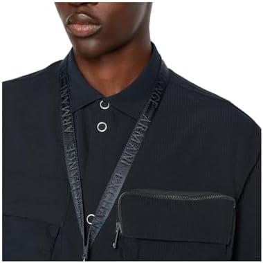 Emporio Armani Men's Nylon Seersucker Long Sleeve Boxy Fit Shirt