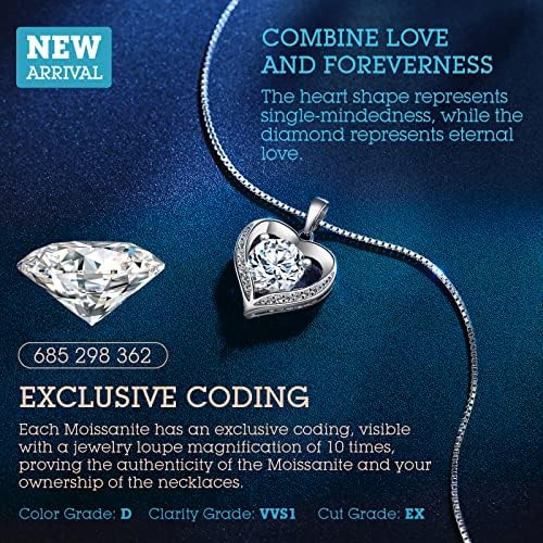 Heart Pendant Necklace Gifts for Wife, Engraved 'I LOVE YOU' Gift for Wife Girlfriend, 1-3 carat Moissanite D Color (VVS1) , Anniversary Eternity Jewelry Present for Wife, Birthday Gifts for Women Wif