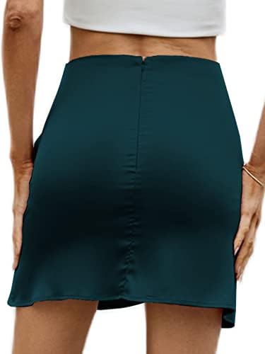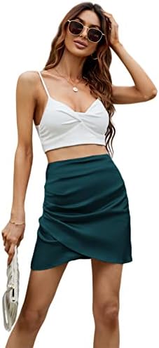 Umenlele Women's Elegant Silky Satin High Waist Ruched Wrap Bodycon Short Skirt