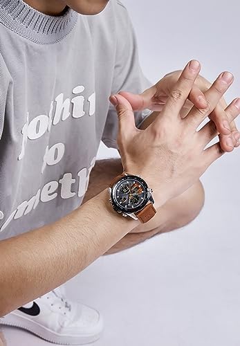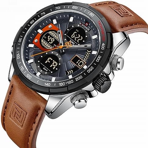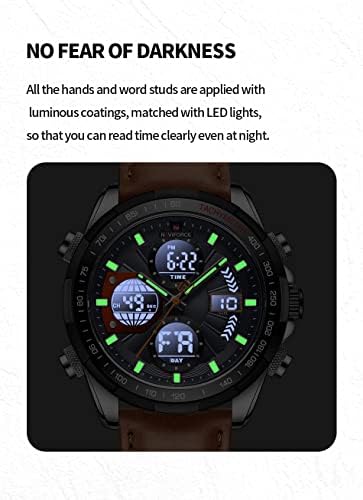 MULTIFUNCTION MILITARY WATCHES: military and luxurious chronograph dial;Three small windows display week and time alarm, stopwatch tachometer, day & date ,LED light display, sporty dial with digital and analog two time zones.let you read time easily. with military outlooking, catch people's eyes in crowd, it's a nice watch for men.Suitable for both outdoor sports and indoor activities. PREMIUM QUALITY MOVEMENT: sporty dial with japanese seiko analog and digital dual time zone display. can adjust the two zone display different times,it's a best choice watch for men when the traveling and business. keep precise time synchronization between the two places COMFORT and DURABILITY Material: Anti-scratch mineral glass and environmental protection vacuum plating case never fade. Genuine leather strap, delicate and soft. BY AIMES offers a range of classic designer wrist watches specially crafted for men.The watch comes with 100% strong glass.The genuine leather strap with width 2.2cm, Length 22cm give the watch a stylish look. WATER & SCRATCH RESISTANT: The watch is 98.4FT/30M water resistant and can bear sweat, accidental rain or water splash. This watch is scratch resistant and provides a smooth feel. The durable strap is fully flexible and keeps your wrist ventilated. MENS PERFECT GIFT: This versatile watch blends in with every occasion be it formal or casual. Wear this watch on the go, from business, leisure to indoor and outdoor activities or for daily use. The AIMES wrist watch is a perfect gift for you and your loved ones.Offer 12-month warraty, if you have questions, contact us freely. #66,483 in Clothing, Shoes & Jewelry ( ) #174 in
