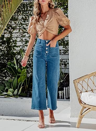 The unique design of wide-leg jeans: High waisted breasted jean makes your waist smaller, and loose, straight legged pants make you more comfortable This is a good pair of boot cut jeans to get your hands on. A good version fits most body types and shows beautiful curves. Pair button-up jeans with a shirt and heels to sit elegantly in the office; Change into a T-shirt and flat shoes and go shopping or for a walk. This is a can 't-miss pair of jeans that are classic, stylish, versatile and easy to clean. Support machine washing, drying clothes, not easy to fade. Please refer to the size measurement in image before ordering. #369 in Clothing, Shoes & Jewelry ( ) #4 in