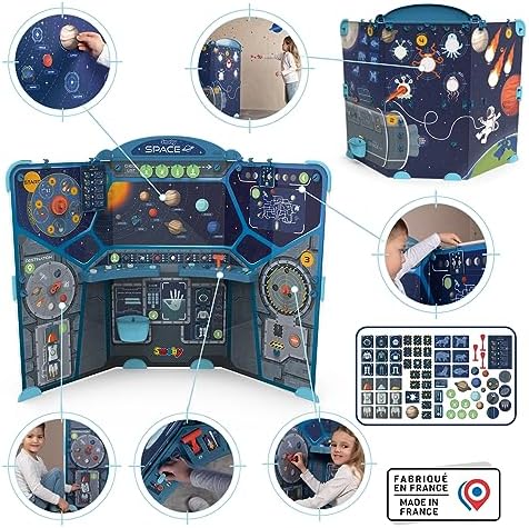 Smoby: Space Center - Cardboard Playset - Learn & Play W/The Solar System Universe, Spaceship 15 Different Activities