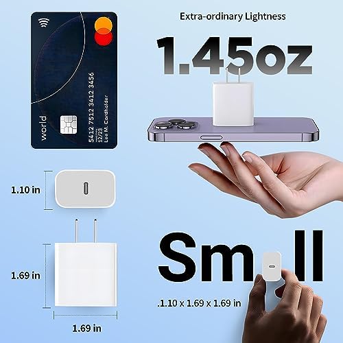 20W High-Speed Power: Fast charger equipped with 20W PD 3.0 USB Type C power delivery wall plug, provides Max 20W output power, charging your iPhone from 0-50% in just 30 minutes, saving over 1.5hrs for you. Charge your smartphone up to 70% faster than standard 5W charging. Safe & Intelligent: 20W USB C charger block equipped with a smart chip, can detect each device’s power needs and adjusts the power flow automatically, Protect Your Devices from over Heating, Short-circuiting and over Charging.The shell is made of high quality ABS material, heat resistance and low temperature resistance, chemical resistance and excellent electrical properties. Wide Compatibility: Type c charging block is optimized to work flawlessly with all your USB Type C devices including smartphones, tablets, wearables and more. Compatible with iPhone 15/15 Plus/15 Pro/15 Pro Max/14/14pro/14pro max/13/13 Mini/13 Pro/13 Pro Max/12 Series/iPhone 8 and later, AirPods Pro, iPad Mini 6, Android phones like Samsung S22/S21, Switch and more USB-C-enabled devices. Compact & Lightweight: Extremely compact size & travel-friendly design fits into your pocket or bag easily without occupying too much space and ensures incredible portability wherever you go. 2 packs allow you to be more selective, one to keep for home use and one to take to the office, school, traveling, etc. What You Get: 20W USB C Power Delivery Charger - 2PACKS(cable not included). Worry-free 12-month warranty and 24/7 customer service, life time technical support.