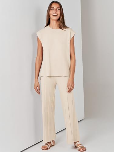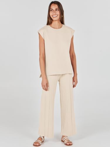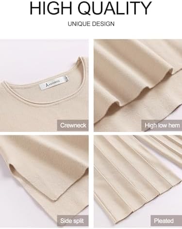 Size - S=US(4-6), M=US(8-10), L=US(12-14), XL=US(16-18). Our two piece outfits for women are available in various sizes ranging from S to XL, ensuring a perfect fit for everyone. Refer to our rich description for more details. Design - The pullover top of this 2 piece lounge set features solid color, crewneck, short sleeve, splited high-low hemline, pull-on style. Pants are designed with comfy elastic waistband and knit wide leg. Keep you feeling confident and stylish for casual days. Match - This women knit 2 piece outfits can match with booties, slippers, heels and sneakers. An effortless, cozy, and chic design for a laidback, throw-on-and-go approach to dressing. Occasion - Two Piece Loungwear Set is perfect for casual, daily wear, office, school, streetwear, dating, hangout, vacation, going out, spring, fall and winter. It's also a good gift to your friend or family Wash - Hand wash / Do Not Bleach / Dry Flat / Do not iron