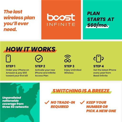 WHAT'S INCLUDED You get the new iPhone 15 , complete with unlimited talk, text, and data on America's Smart Network. We make it easy to keep your existing number or get a new one if you prefer. Best of all You can upgrade to the latest iPhone every year—no trade-in required to get started. Yes, seriously. DYNAMIC ISLAND COMES TO IPHONE 15 — Dynamic Island bubbles up alerts and Live Activities — so you don’t miss them while you’re doing something else. You can see who’s calling, track your next ride, check your flight status, and so much more. INNOVATIVE DESIGN — iPhone 15 features a durable color-infused glass and aluminum design. It’s splash, water, and dust resistant. The Ceramic Shield front is tougher than any smartphone glass. And the 6.1" Super Retina XDR display is up to 2x brighter in the sun compared to iPhone 14. 48MP MAIN CAMERA WITH 2X TELEPHOTO — The 48MP Main camera shoots in super high-resolution. So it’s easier than ever to take standout photos with amazing detail. The 2x optical-quality Telephoto lets you frame the perfect close-up. NEXT-GENERATION PORTRAITS — Capture portraits with dramatically more detail and color. Just tap to shift the focus between subjects — even after you take the shot. POWERHOUSE A16 BIONIC CHIP — The superfast chip powers advanced features like computational photography, fluid Dynamic Island transitions, and Voice Isolation for phone calls. And A16 Bionic is incredibly efficient to help deliver great all-day battery life. UNLIMITED WIRELESS Absolutely, all powered by America'a Smart Network. We brought together three of America's 5G networks to give you unparalleled nationwide coverage. Now, you benefit from the combined strength of not just one, but three networks, ensuring seamless connectivity wherever you are.