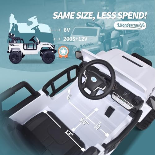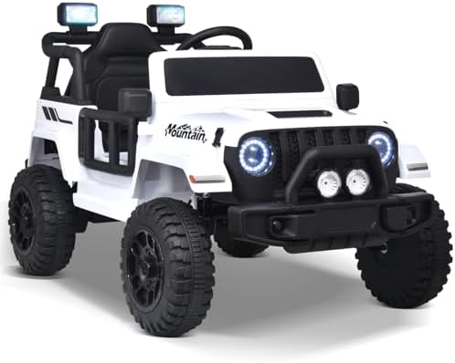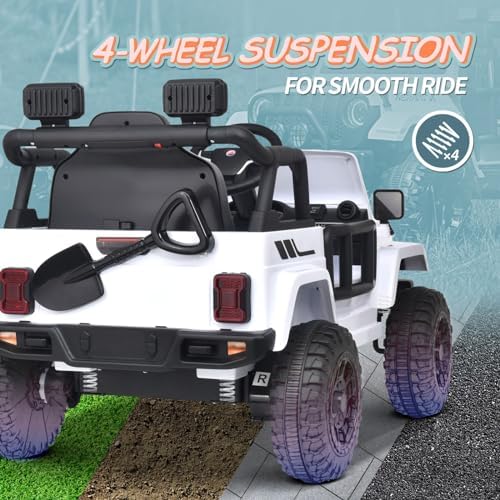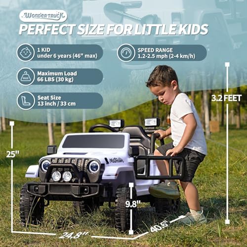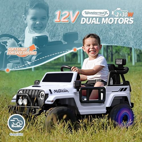 Joywhale 12V Kids Ride on Truck Battery Powered Motorized Car Electric Vehicle for Kids, with Remote Control, 4-Wheel Suspension, LED Lights, Music & FM, Seat Belt, Portable Handle, White