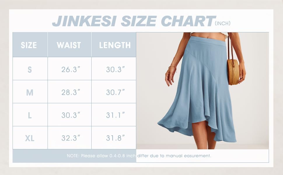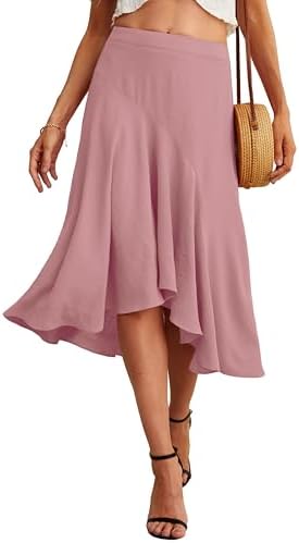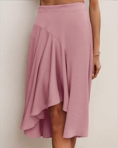 JINKESI Women's Midi Skirt Elegant Flowy Ruffle High Waist Summer Casual High Low Midi Skirts