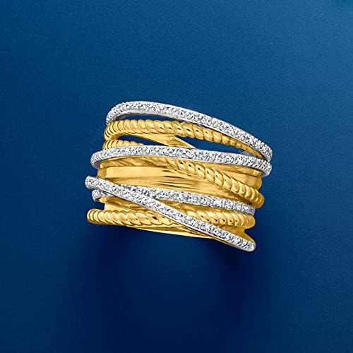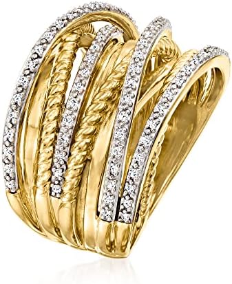 18KT GOLD OVER STERLING WITH DIAMONDS — Crafted in polished 18kt yellow gold over sterling silver. This complex .25 ct. t.w. diamond highway ring in 18kt yellow gold over sterling silver offers sparkle, tone and texture. A single ring is wrapped in crisscrossed sections of rope texturing and dazzling .25 ct. t.w. diamonds, creating a multi-dimensional look. Measures 5/8" wide. Size 6. AFFORDABLE DIAMOND JEWELRY – You don’t have to spend a fortune to enjoy diamond jewelry. Ross-Simons offers pieces that have just enough sparkle so that you’ll still shine, day or night. This splendid .25 ct. t.w. diamond highway ring in 18kt yellow gold over sterling silver will elevate your look every time you wear it. THE PERFECT TOUCH – With its crisscrossed design, this twinkling and textured diamond highway ring adds the perfect feminine accent to any style, day or night, while elevating your look with its elegant appeal. THE PERFECT GIFT FOR HER – For yourself or any special woman in your life, this shining highway ring is the ideal gift for the modern woman with a sophisticated sense of fashion. Whether she prefers modern or traditional jewelry, a diamond ring makes a luxurious statement and is the perfect present for any woman and any occasion. GIFT BOX INCLUDED – Treat yourself, your mom, your sister, daughter or best friend to the gift of amazing, affordable jewelry. Perfect for any occasion! Due to the naturally occurring characteristics of diamonds, each is unique and may exhibit imperfections such as inclusions, blemishes and cloudiness, as well as color variations. #1,377,319 in Clothing, Shoes & Jewelry ( ) #6,496 in