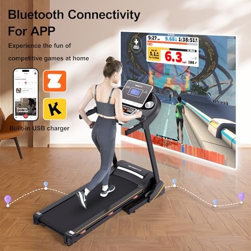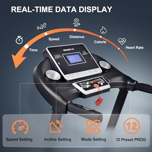 ENHANCED WORKOUT EXPERIENCE: The treadmills for home achieves a personalized workout with adjustable speed ranging from 0.5 to 10 MPH, and customizable incline levels from 0% to 15%(automatically via control buttons). The spacious 16.5" x 45.5" running belt provides ample room for comfortable strides. With 12 preset programs, users can easily vary their workouts for optimal results. SUPERIOR CUSHIONING & STABILITY: Enjoy a joint-friendly workout experience thanks to the treadmill's innovative six sets of CEMTS patented shock absorbers. The treadmill's robust construction and sturdy materials ensure stability, even during intense workouts. The foldable design with a soft-drop system allows for easy storage and space-saving. Treadmill is designed to accommodate users of most body types with its weight capacity of 280 lbs. INTUITIVE CONTROLS & EASY OPERATION: The folding treadmill features a user-friendly interface with intuitive direct access buttons for start, stop, countdown modes, program selection, incline adjustment, and speed control,etc. It also offers one-touch quick keys for immediate speed (2/4/6/8 MPH) and incline (3/6) adjustments, streamlining your workout sessions. Quick speed and incline adjustments on the handrail also provide great convenience for users. CLEAR & ACCURATE TRACKING: Stay connected and motivated during workouts with Bluetooth and app compatibility. The portable treadmill can monitor your heart rate with the built-in pulse sensors, and track essential workout metrics including speed, incline, time, distance, calories burned, and heart rate displaying simultaneously on the clearly comprehensive LCD large screen. Stay motivated and informed throughout your workout with the treadmill's advanced tracking capabilities. RELIABLE AFTER-SALES SUPPORT & COMFORTABLE RUNNING EXPERIENCE: The combination of elasticity and smoothness makes the high-quilty running belt an ideal choice for users seeking a comfortable and low-impact exercise experience. With 95% of the assembly completed upon delivery, the incline treadmill for home requires minimal effort to set up. Plus, prompt and reliable customer service ensures that any post-purchase concerns or inquiries are promptly addressed.
