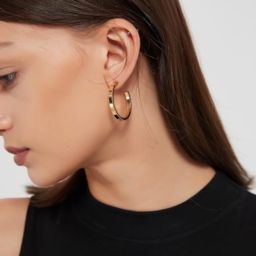 This love earring set includes 3 pairs of hoops with an outer diameter of 14mm, 22mm, and 28mm. Each pair is 2mm thick. These hoop earrings can be worn alone or stacked together making it perfect for everyday wear. The gold earrings are made for 316L stainless steel for long life.The sparkle Cubic Zirconia stones have been cleverly and perfectly set on the earrings. Real 18K Gold Plating on these earrings will ensure a very long lasting brilliant finish that is nickel free, lead free and hypoallergenic. Perfect gifts for celebrating the special woman in your life! Great as birthday gifts for women and girls, stocking stuffer Christmas gifts for family or best friends. 3 Months Money-back and 100% satisfaction guarantee. If you have any questions or are not satisfied with our products, please contact us any time. #318,952 in Clothing, Shoes & Jewelry ( ) #2,026 in